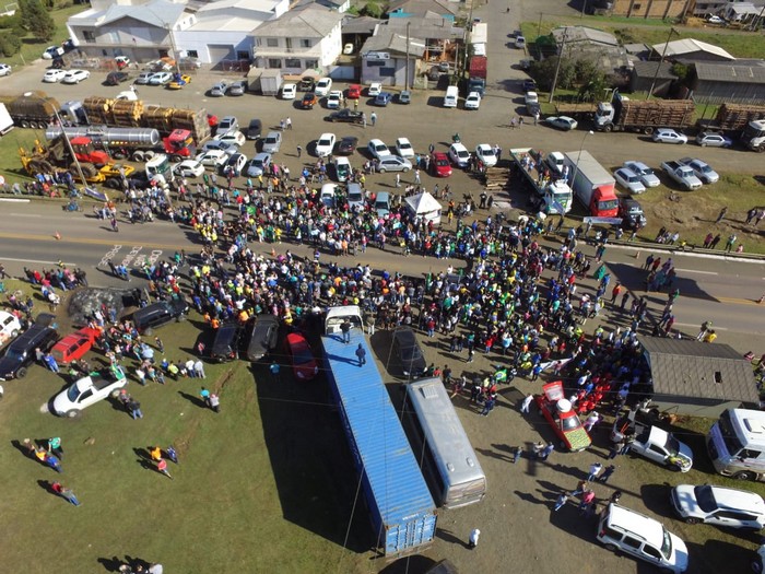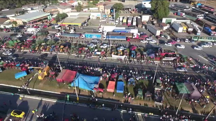 Os agricultores também estão com suas maquinas paradas no ‘trevo do Mallon’, em apoio a greve que ontem entrou no seu nono dia.