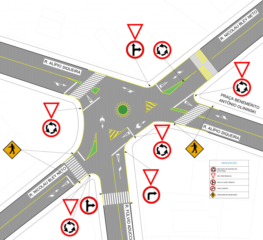 O objetivo é ordenar as conversões, diminuindo o número de conflitos existentes nestas interseções e evitar acidentes. Também serão colocados canteiros, sinalização horizontal (pintura de faixas de pedestres, setas), e vertical (placas).