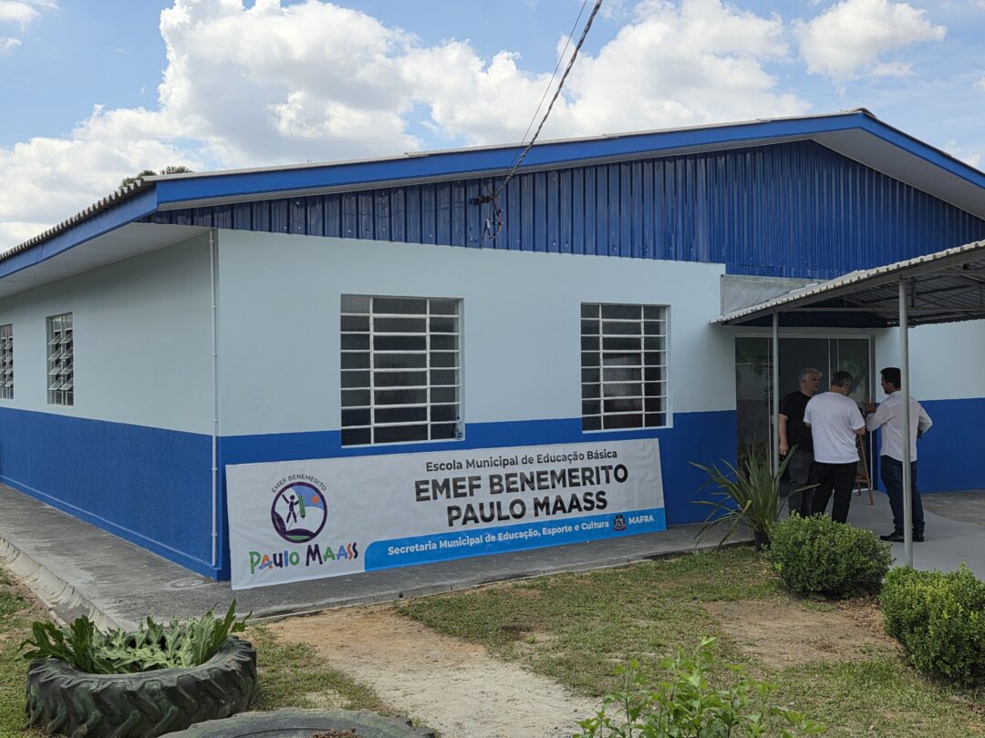 A Prefeitura de Mafra realizou na segunda-feira, dia 30, a inauguração da reforma e ampliação da Escola Municipal de Ensino Fundamental  Benemérito Paulo Maass, localizada na comunidade de Amola Flecha. A entrega marca mais um investimento do município voltado à melhoria da infraestrutura educacional e à qualidade do ensino.