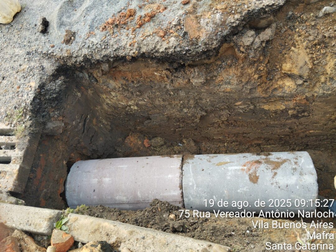 – Tubulação na Rua Vereador Antônio Narloch, na Vila Buenos Aires;