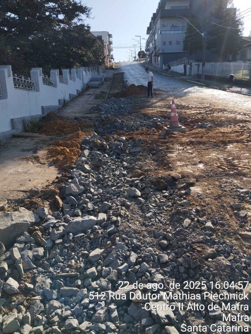 – Continuação da tubulação da rua Jorge Lacerda com Mathias Piechnick; Centro II Alto de Mafra;