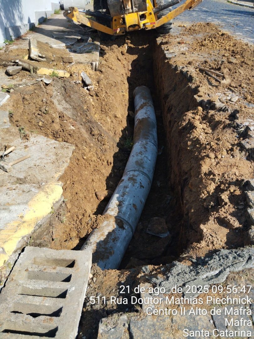 – Conclusão da tubulação rua Jorge Lacerda com Mathias Piechnick; Centro II Alto de Mafra
