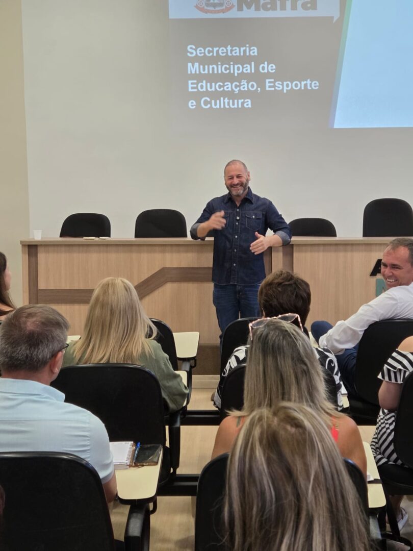 A Prefeitura de Mafra, por meio da Secretaria Municipal de Educação, realizou reunião de trabalho com gestores das 29 escolas da rede municipal de ensino, com o objetivo de alinhar estratégias e fortalecer o planejamento para o ano letivo de 2026.