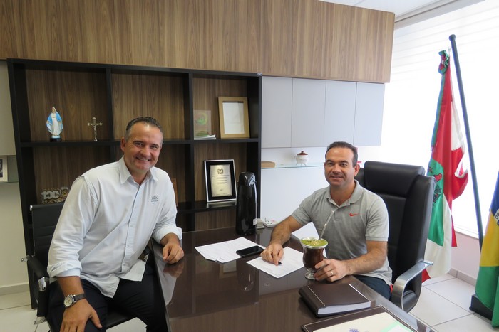 Na última quinta-feira (18), o presidente da Câmara de Vereadores de Mafra, Adilson Sabatke (PP) esteve na nova sede da Prefeitura, onde se reuniu com o prefeito Wellington Bielecki,