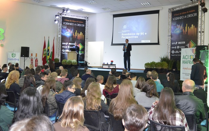 Em sua palestra no Fórum de Líderes da Indústria, o presidente da FIESC mostrou dados atualizados da economia do Planalto Norte Catarinense. O Produto Interno Bruto da região alcança R$ 6,8 bilhões, sendo que a indústria é responsável por 30,6% desse valor. São Bento do Sul ocupa a primeira posição, com PIB de R$ 2,6 bilhões, seguida de Mafra com R$ 1,4 bilhão.