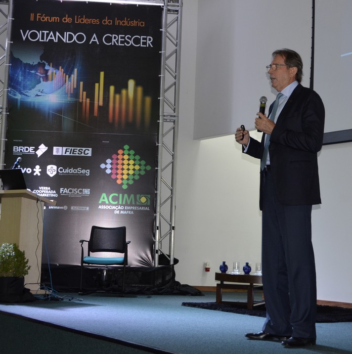 Em sua primeira visita ao planalto norte desde que foi eleito, o presidente da FIESC – Federação das Indústrias de Santa Catarina mostrou como os diferenciais da economia catarinense estão fazendo o estado retomar o crescimento de forma mais rápida e eficiente que o Brasil. Mario Cezar de Aguiar fez as explanações no II Fórum de Líderes da Indústria, realizado na noite de quarta-feira, dia 29, pela Associação Empresarial de Mafra. O evento também contou com a presença do vice-presidente regional da FIESC, Arnaldo Huebl, e demais lideranças empresariais.
