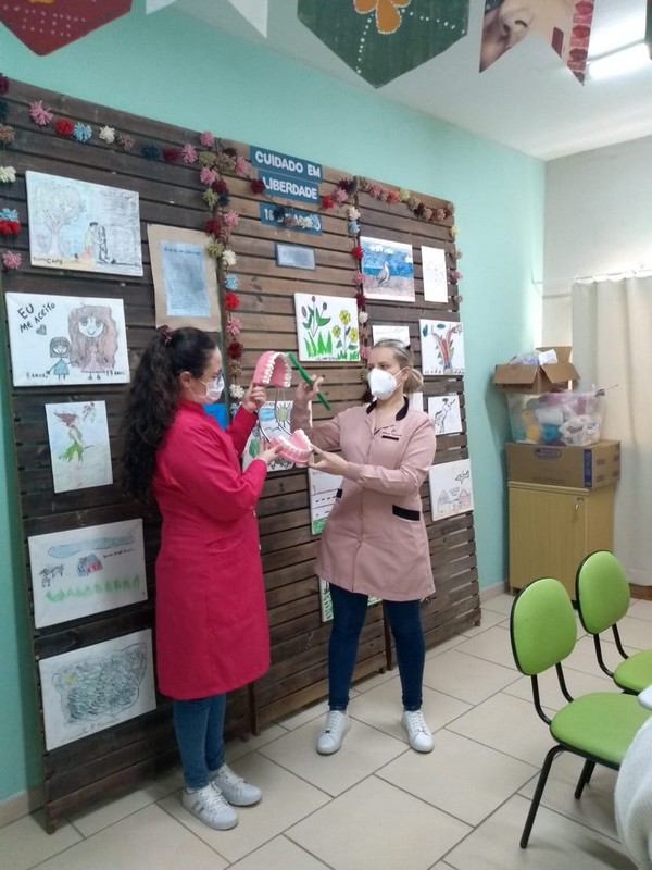 Participaram da ação Débora Taucheck e Carla Schermack Ribeiro, respectivamente Dentista e Técnica em Higiene Dental, além da Agente Comunitária de Saúde, Elita Alves Cabral. A ação foi realizada na oficina de Atividade de Vida Diária, do Terapeuta Ocupacional do CAPS, Saulo Vieira.