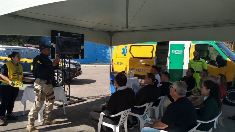 A PolÃcia Rodoviária Federal (PRF) realizou, em Mafra, na última sexta-feira (30), diversas palestras para orientar e conscientizar os pais da importância do uso do cinto, cadeirinha, assento de elevação e outros dispositivos de proteção para as crianças. A ação foi alusiva ao Dia Nacional de Prevenção de Acidentes com Crianças e contou com o apoio da Autopista Planalto Sul.