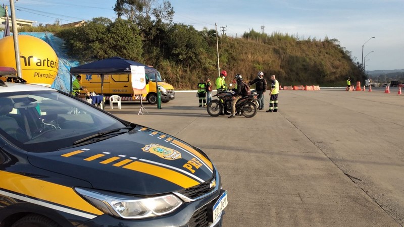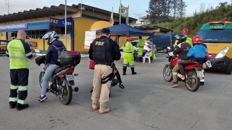 A PolÃcia Rodoviária Federal e a concessionária Arteris Planalto Sul realizaram na tarde de quinta-feira (26), em Mafra, ação educativa direcionada a motociclistas que trafegam na BR 116.