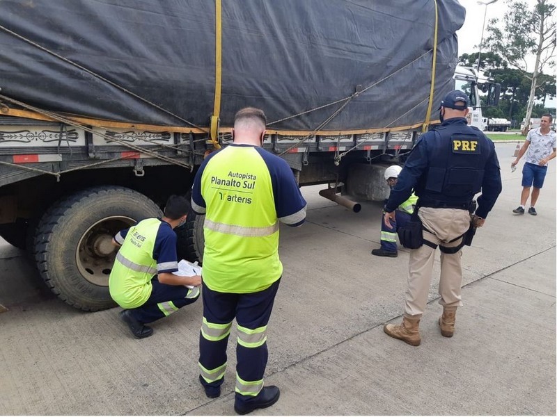 Policiais rodoviários federais realizaram na manhã de ontem (29), na BR 116 em Mafra, comando em conjunto com Concessionaria Autopista Planalto Sul, fiscalização em veÃculos de carga com verificação dos equipamentos obrigatórios e para verificação de excesso de peso.