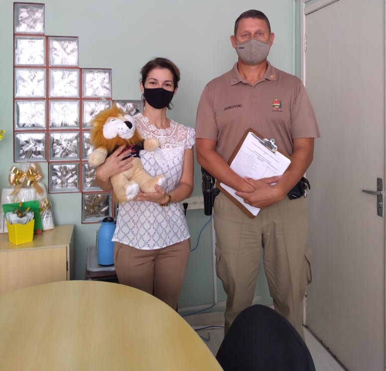 Vale destacar que a entrega da mascote é fruto de uma parceria entre a Guarnição Especial da Polícia Militar de Mafra, Câmara de Vereadores e Prefeitura.