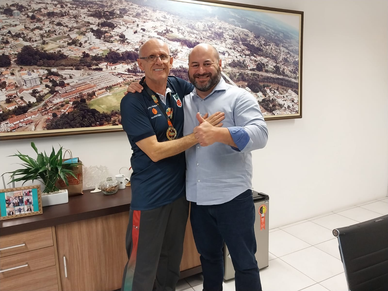 O prefeito Emerson Maas fez questão de parabenizar o professor Plácido Gaissler Filho, que atuou como assistente técnico da seleção catarinense sub-17 feminino, que disputou o Campeonato Sul Brasileiro de Seleções Sub-17 Feminino, sagrando-se campeã. Assistidas por Plácido, as atletas venceram o time do Paraná pelo placar 44 x 33, num jogo disputado. O campeonato foi realizado no último fim de semana em Criciúma.