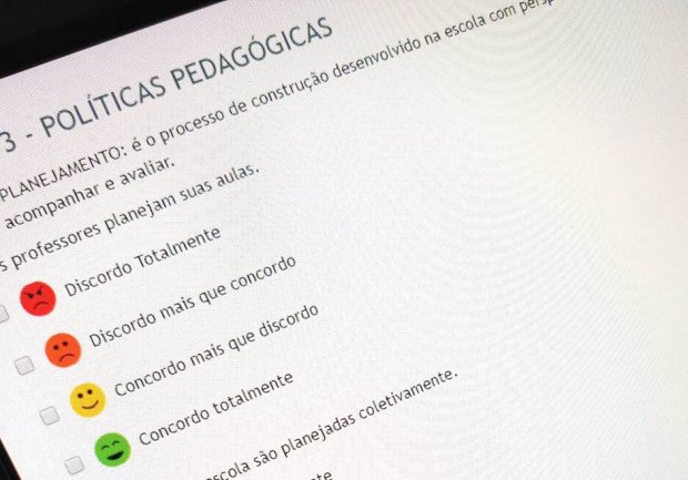 São 16 perguntas organizadas em quatro eixos: as Políticas Pedagógicas, que envolve planejamento, organização, práticas pedagógicas e avaliações; o Clima Organizacional, se ele favorece socialização e relações respeitosas e amistosas; a Infraestrutura, para saber se a escola está equipada adequadamente para o processo de ensino e aprendizagem e por último a Política de Gestão, que levanta se a equipe gestora é presente e consegue conciliar demandas da escola.