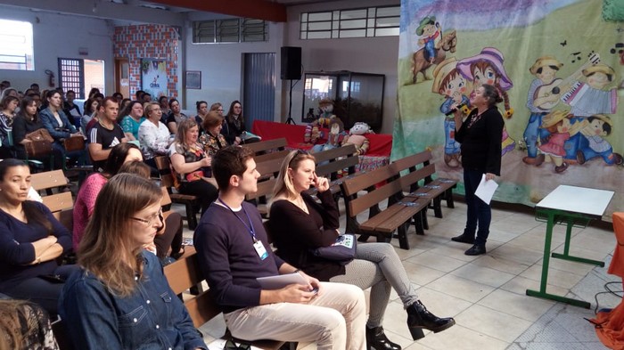 Os professores do ensino fundamental passaram por mais uma etapa dessa formação, no dia 18 de julho, no CEMMA, quando participaram de duas palestras: “Perspectivas e possibilidades”, proferida pelo Professor Me Vânio Cesar Seemann (Em parceria com o SENAC/Mafra) e “Trabalho em parceria com o professor”, proferida pela Professora Ana Claudia Rauen- Coordenadora do Setor do Atendimento Educacional Especializado da Secretaria e pela Psicóloga Talita Valério – Psicóloga da Secretaria.