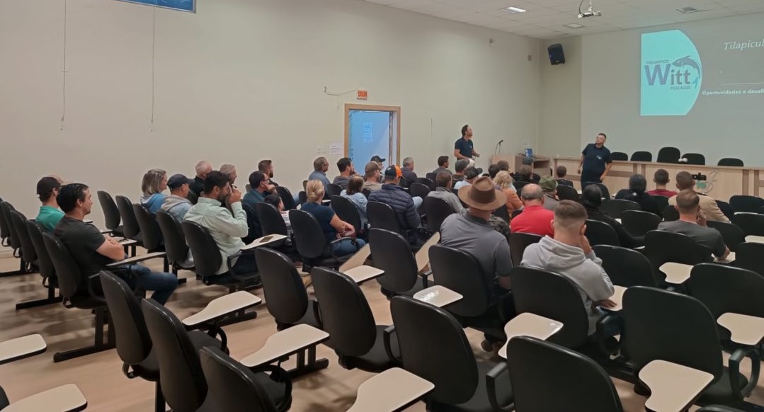 As oportunidades e desafios na produção, qualidade da água, qualidade de alevinos, qualidade de ração, qualidade do peixe acabado, planejamento das lagoas, protocolos para a integração e formas de comercialização: estes foram os temas abordados na palestra ministrada por Luis Gustavo Witt – sócio proprietário do Frigorífico Witt Pescados e pelo gerente de negócios João Rafael, na última quarta-feira, 06, na Amplanorte, das 18h30 às 21 horas. O público foi composto por cerca de 40 produtores rurais dos quais a Secretaria Municipal de Agricultura e Interior fez levantamento de dados e os convidou para o evento, seguindo o cronograma do projeto “Mafra Mais Peixe”.