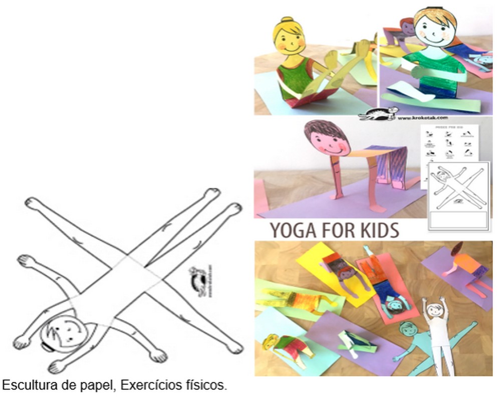 O professor trabalha imagens de pessoas fazendo exercícios físicos e apresenta a obra “Os Corredores”, do pintor francês Robert Delaunay e comenta com as crianças sobre as cores e formas presentes na obra. Convida as crianças a fazerem uma escultura de criança fazendo exercício físico, inspirados na obra .