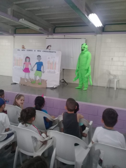 Alunos da educação infantil do CEM Beija-Flor receberam na tarde da última quarta-feira (11), orientações sobre higiene do corpo, feitas na foram de teatro de fantoche, por profissionais do ESF CAIC. De forma lúdica as crianças acompanharam temas como escovação dos dentes e banhos, dentre outros. Elas aprenderam ainda sobre a dengue, observando os fantoches do mosquito Aedes aegyp e de uma bactéria. Além do Beija-flor, outras duas escolas municipais das imediações receberam o teatro, somando mais de 400 alunos atingidos.