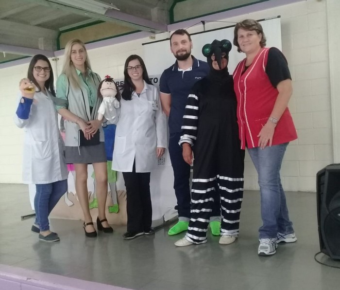 Participaram do teatro de fantoche o Enfermeiro José Schuda, a ACS Terezinha Mamede dos Passos e as Acadêmicas de Enfermagem, Luana Roberta da Luz e Joyce Mikaela Stuy.