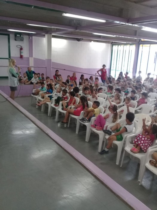 Alunos da educação infantil do CEM Beija-Flor receberam na tarde da última quarta-feira (11), orientações sobre higiene do corpo, feitas na foram de teatro de fantoche, por profissionais do ESF CAIC. De forma lúdica as crianças acompanharam temas como escovação dos dentes e banhos, dentre outros. Elas aprenderam ainda sobre a dengue, observando os fantoches do mosquito Aedes aegyp e de uma bactéria. Além do Beija-flor, outras duas escolas municipais das imediações receberam o teatro, somando mais de 400 alunos atingidos.