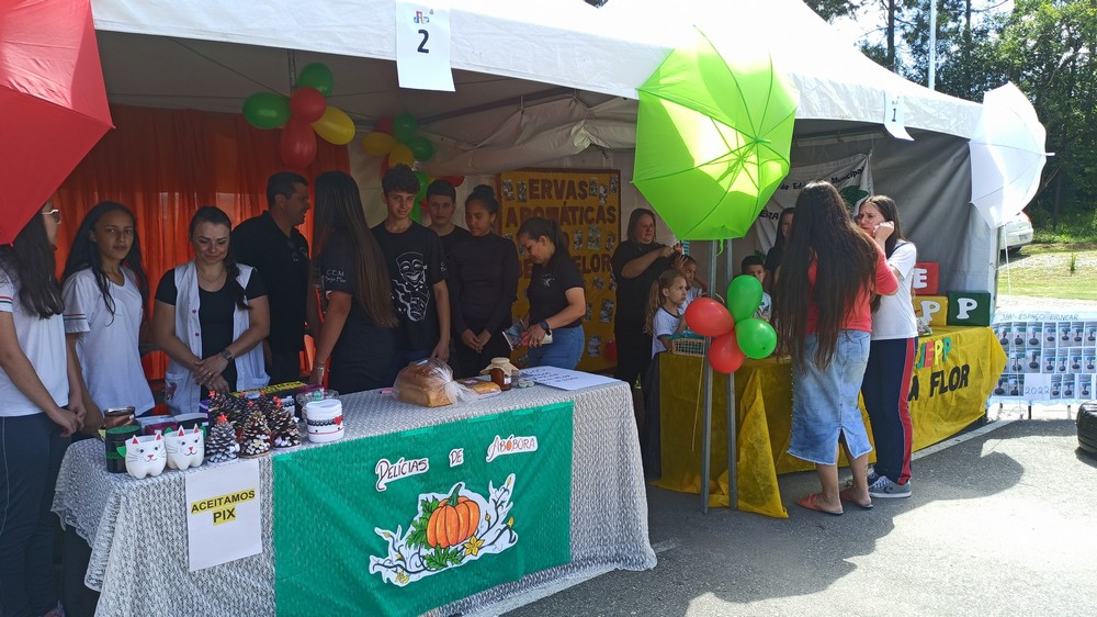 Já o 9º ano trabalhou empreendedorismo e saúde ao pesquisar as Delícias da abóbora. Partindo da doação das abóboras, procuraram o que poderia ser feito com elas e, nas pesquisas descobriu-se que o Hospital do Câncer de Curitiba estava utilizando o vegetal na alimentação dos pacientes que passavam por quimioterapia. A partir das descobertas produziram bolos, docinhos, pães e brigadeiros de abóbora. Para o bolo de abóbora com castanhas utilizaram a receita premiada no concurso “Mafra empreendendo na cozinha” de 2021. As professoras Cirlene e Sileide destacaram a ação em equipe da turma “que trabalhou na produção como uma empresa, cada um na sua função, na sua escala de trabalho e com foco nos resultados, que serão revertidos para a formatura do 9º ano”. Na feira, as delícias da abóbora foram apresentadas pelos alunos Helana, Rudnei, Ana Paula, Sara e Guilherme.