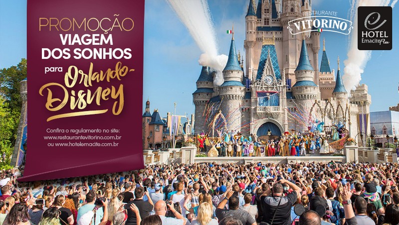 Viajar é bom não é? Imagina então ganhar uma viagem incrível pra Orlando-Disney! É a promoção “Viagem dos Sonhos” do Restaurante Vitorino e Hotel Emacite Flex.
