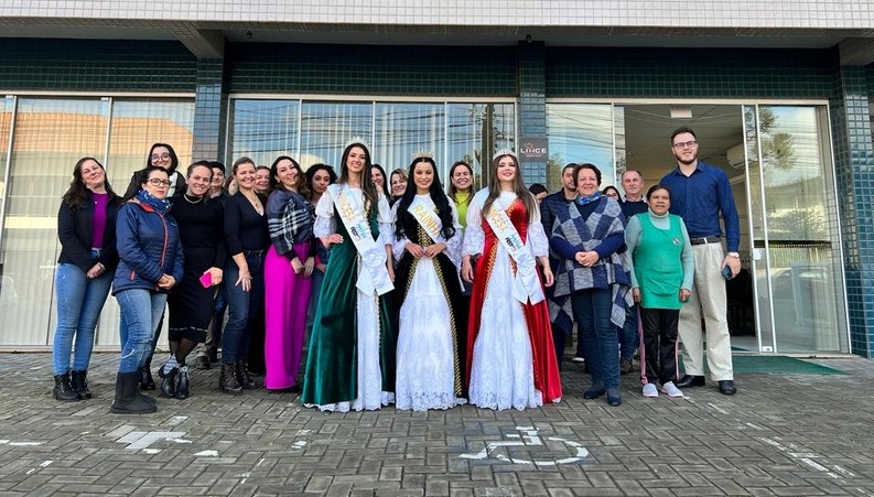 A realeza mafrense formada por Vivian Tibes (Rainha), Scheila Yorhana Skonieczny, (primeira princesa) e Nicoli Fernandes Farias (segunda princesa) esteve na sede da Prefeitura, na tarde de sexta-feira, dia 21, para fazer a divulgação do concurso que elegerá a rainha e as princesas dos 106 anos de Mafra. Elas conversaram com os funcionários e convidaram as solteiras, com idade entre 18 e 26 anos, a se inscreverem para o próximo concurso.