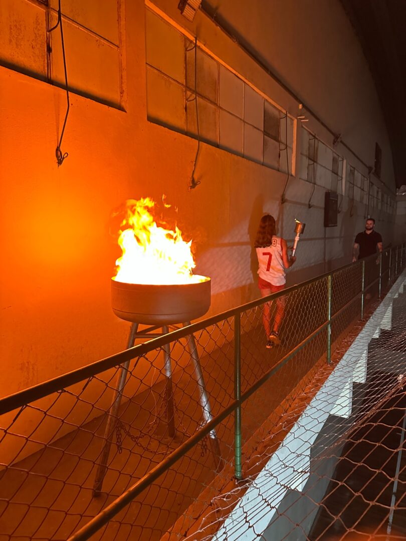 A honra de carregar a tocha e acender a pira olímpica foi concedida à jovem atleta Gabriela Aparecida de Andrade Fleischmann.