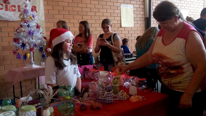 A aluna Francine Hinz ajudou com a confecção dos brinquedos e com a  vendas. Gostou de fazer os porquinhos para poupar moedas e disse que aprendeu muito. “Aprendi a fazer o troco, a conversar com as pessoas e a ajudar meus colegas”, afirmou.