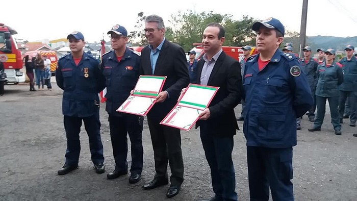 Encerrando a solenidade foi feita a entra do Título de Amigo do Bombeiro, que é concedido pelo comando geral do Corpo de Bombeiros Militar de Santa as pessoas que colaboram com a corporação.