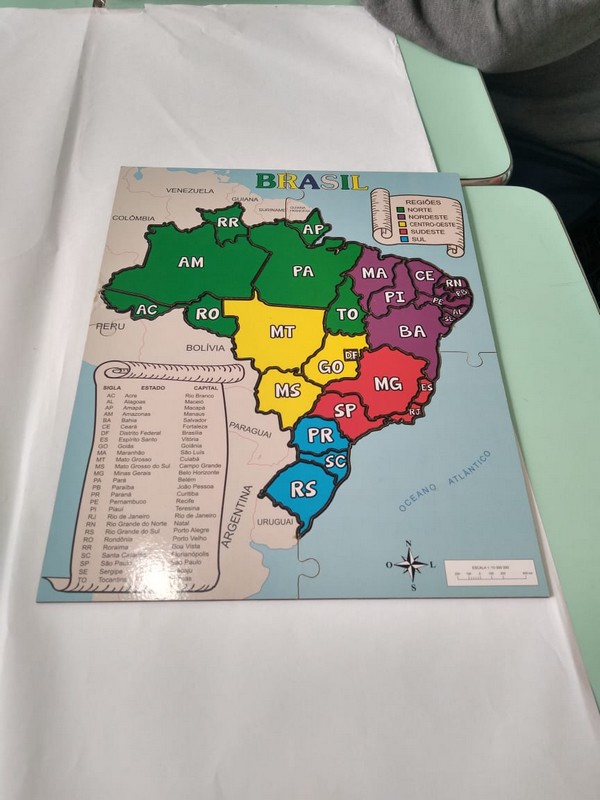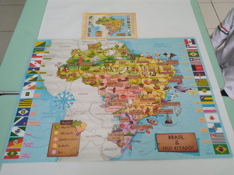 Foram quatro semanas de estudo onde buscou-se levar o aluno a compreender as divisões territoriais e localizações geográficas. A montagem do quebra-cabeça do Mapa do Brasil fez parte da consolidação do conteúdo levando os alunos a identificar as 26 unidades federativas (Estados) e 1 Distrito Federal, bem como as 05 (cinco) grandes regiões que compõem o país: Norte, Nordeste, Centro-Oeste, Sudeste e Sul.