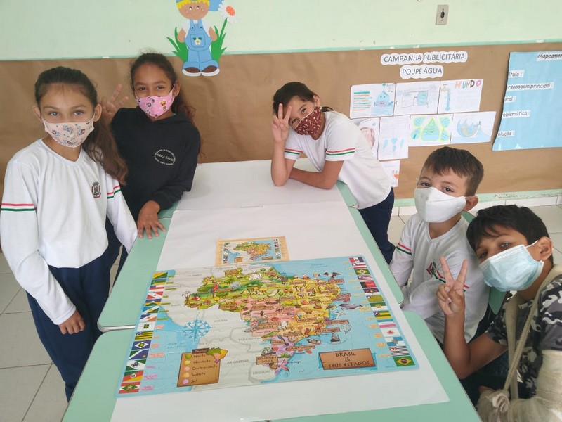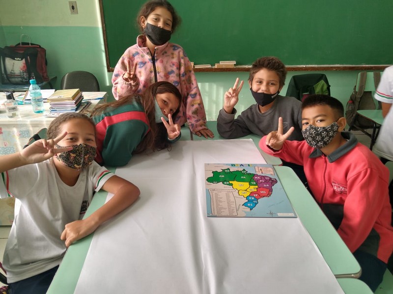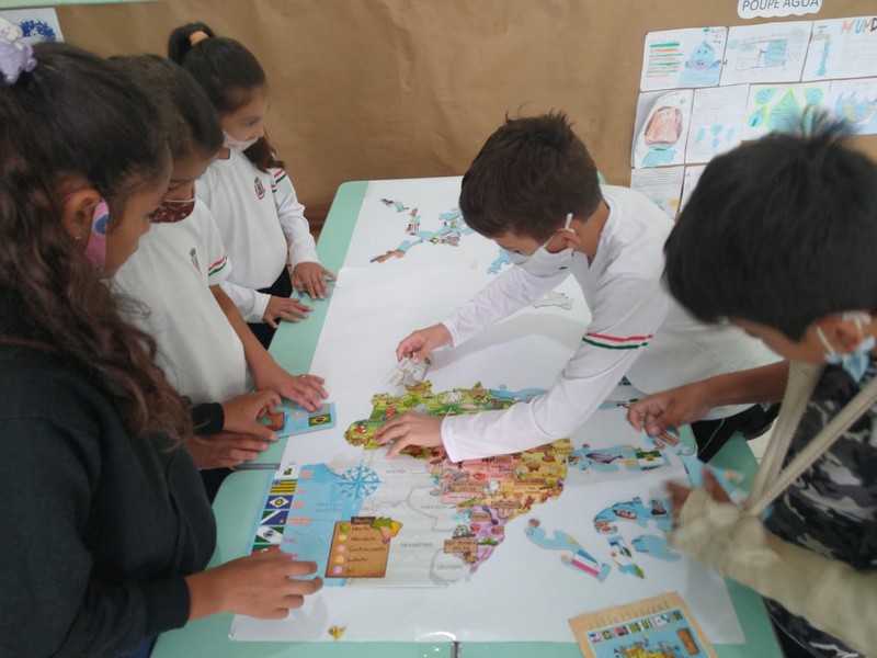 Os alunos do 4º ano da EMEF Amola Flecha embarcaram em uma viagem pelo Brasil, a fim de reconhecer as divisões políticas administrativas que o compõem. Foram aulas divertidas e lúdicas em que a professora Daniela Fuchs, por meio de quebra-cabeças, apresentou as Unidades político-administrativas do Brasil e regiões brasileiras, como parte das disciplinas de Geografia e Matemática. Ela uniu o uso de tecnologias modernas a um recurso simples, físico e conhecido das crianças, que é o quebra-cabeças. Leia mais aqui.