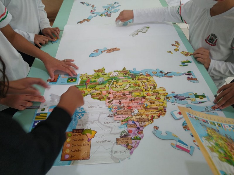 “Quando apresentei aos alunos a proposta de montagem do Mapa do Brasil, a partir de dois quebra-cabeças, não imaginei que seria tão positivo. Fiquei impressionada com o envolvimento, foco, atenção e o trabalho em equipe por eles desenvolvido”, afirmou e explicou que antes de realizar a montagem do quebra-cabeça tradicional haviam realizado uma atividade similar utilizando os tablets da escola, acessando o aplicativo Mapa do Brasil. “Os alunos gostaram muito do recurso online, porém o recurso do quebra-cabeça físico proporcionou a aproximação dos grupos a fim de juntos atingirem um mesmo objetivo, consolidando assim o aprendizado acerca do tema estudado”, concluiu.