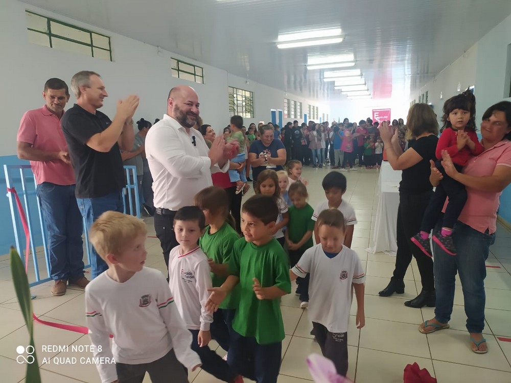 Para simbolizar a inauguração dos novos espaços, a escola contou com a presença do prefeito Emerson Maas, da secretária de educação Jamine Emmanuelle Henning, do presidente do conselho escolar Zaqueu Hack, do representante da APP, Adao Gilmar Steidel, além de professores, servidores, pais e alunos.
