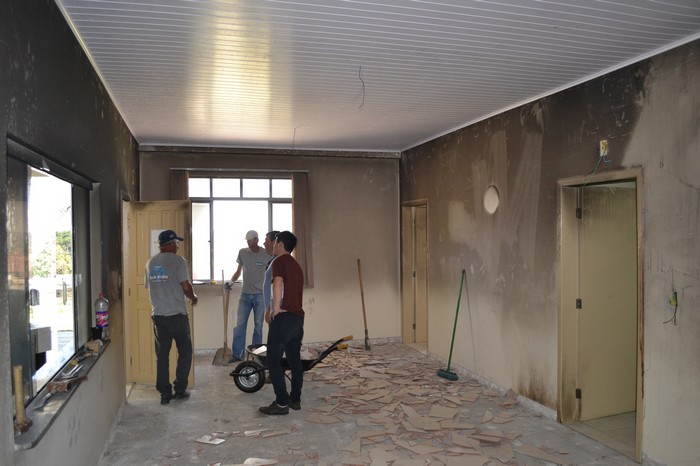 As reformas para reparar os danos do incêndio na EEB Francisco Izabel, em Mafra, começaram na última sexta-feira (01). O gerente de infraestrutura da Agência de Desenvolvimento Regional (ADR) de Mafra, Célio Leandro Sarmento, vistoriou as obras nesta terça-feira e constatou que o forro tanto do corredor de entrada quanto da secretaria já tinham sido trocados, sendo que os funcionários trabalhavam, no momento, na troca do piso. A previsão é que os trabalhos sejam concluídos até o final da próxima semana, dia 15.