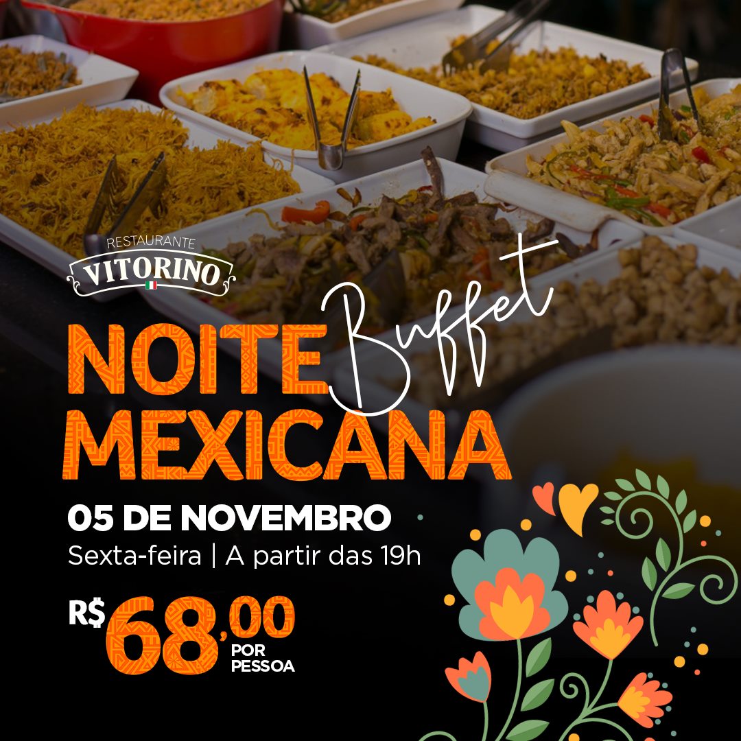 O Restaurante Vitorino terá mais uma Noite Mexicana no dia 05 de novembro a partir das 19h. Aprecie os clássicos da culinária mexicana em uma noite especial. 🌮🌵🌶️ Toda a noite por apenas R$ 68,00/pessoa.
