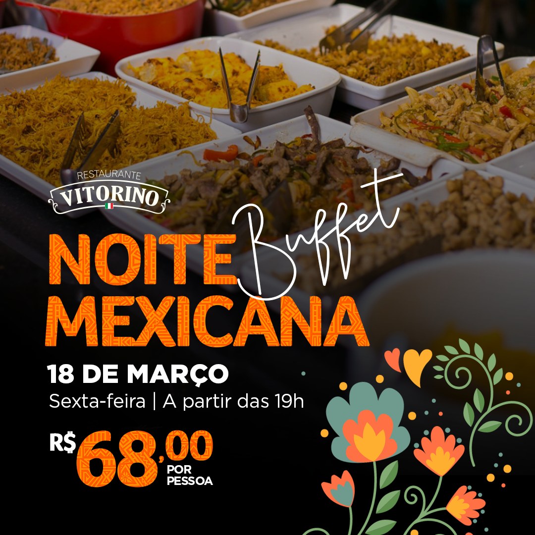 O Restaurante Vitorino terá mais uma Noite Mexicana no dia 18 de março. Aprecie os clássicos da culinária mexicana em uma noite especial. 🌮🌵🌶️
