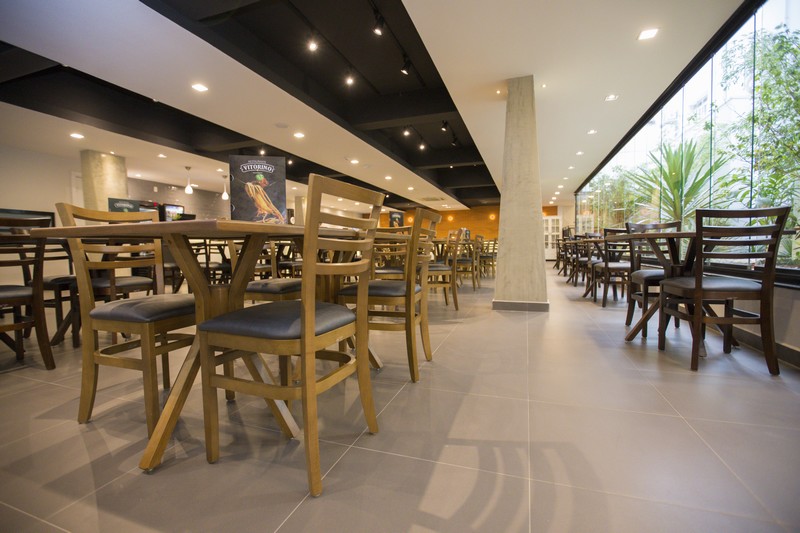 Situado em anexo ao Hotel Emacite Flex e aberto a todo o público, o Restaurante Vitorino possui espaço climatizado, com acessibilidade, jardim de inverno e toques de iluminação moderna ambiente confortável para suas refeições.