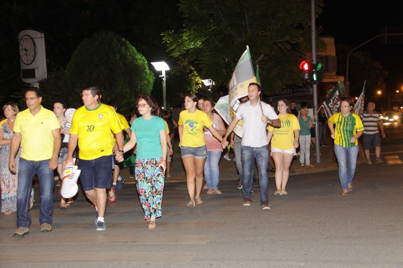 Os manifestantes se reuniram na praça Lauro Müller, seguindo com uma carreata pelas principais ruas do município. A movimentação iniciou às 21:30hs, onde as pessoas utilizaram apitos, bandeiras escritas “fora PT” e “renuncia Dilma”, além de alguns baterem panelas em forma de protesto. A carreata seguiu rumo a Rio Negro e teve o seu término aproximadamente às 23hs, quando os manifestantes retornaram as suas residências.