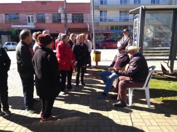 Nem o frio superou a animação da roda de chimarrão promovida pelo Serviço de Convivência e Fortalecimento de Vínculos, na Praça Lauro Müller.