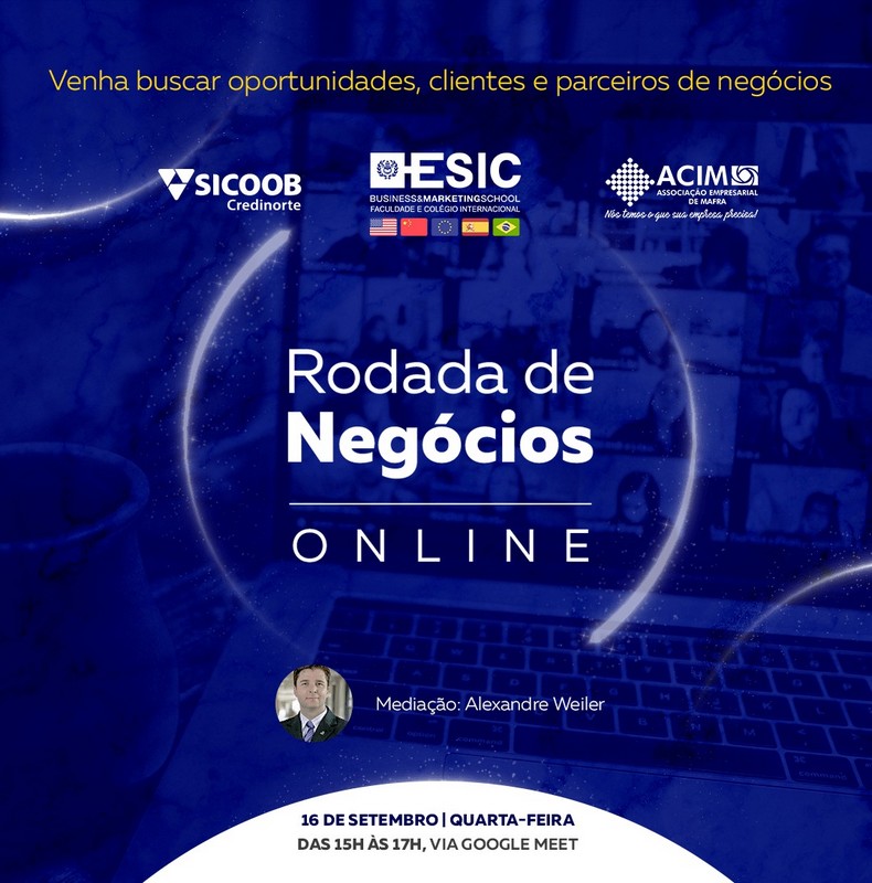 Na próxima quarta-feira (16) a ACI de Mafra em parceria com o Sicoob e a ESIC – Business e Marketing School, realiza a “Rodada de Negócios Online”. O objetivo do evento é aproximar as relações empresariais, gerar oportunidades, parcerias de negócios e a conquista de novos clientes.