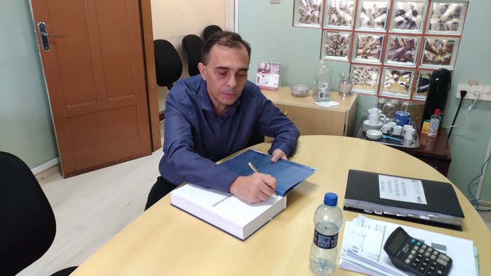 O Rotary Club de Mafra doou na última terça-feira, dia 8, um exemplar do livro “Destino Cataratas do Iguaçu – novecentos quilômetros de caiaque e aventura”, de autoria de Rogério João Baggio, para fazer parte do acervo da Biblioteca Pública Municipal “Alzira Maria do Valle”. A doação foi feita pelo presidente do clube, Antônio Nahum Zaine, que fez a dedicatória no momento da entrega e que também foi assinada pelos membros Saulo Bernardi e Laertes Kollross.