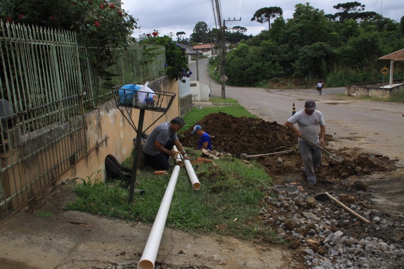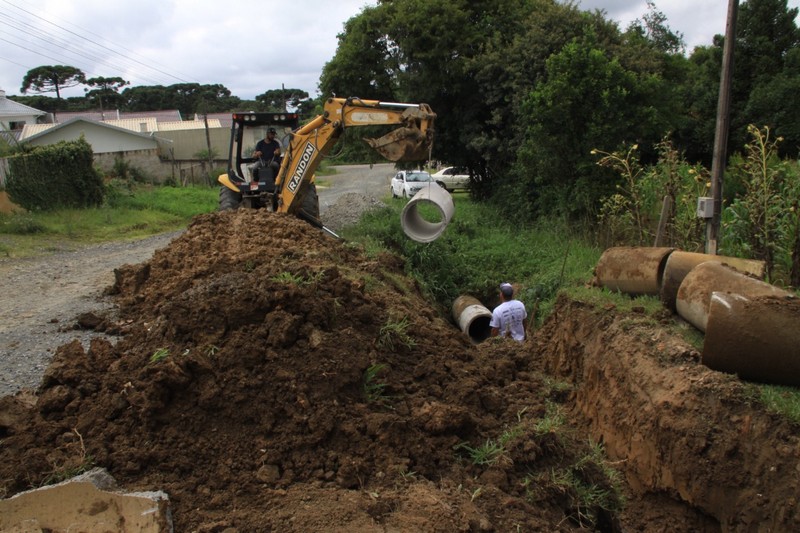 Equipe da Prefeitura também esteve na Rua Guilherme Witt na Vila Nova realizando a troca de cinco manilhas de 30cm de diâmetro que estavam quebradas e causando prejuízos na rede de escoamento de água. Já na Rua Pioneiro Heleodoro Arbigaus foi feita substituição da tubulação, sendo colocados nove tubos de 60cm de diâmetro cada.