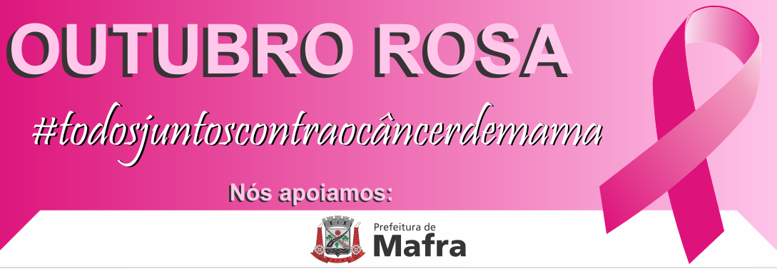 A Prefeitura de Mafra, através da Secretaria Municipal de Saúde e das ESFs (Estratégias de Saúde da Família), estará promovendo diversas ações no mês de outubro, como realização de preventivos, consultas e palestras com o objetivo de conscientizar e chamar a atenção da população, em especial das mulheres Mafrenses, neste “Outubro Rosa” – mês dedicado à conscientização sobre a importância da prevenção e diagnóstico precoce do câncer de mama e câncer de colo do útero.