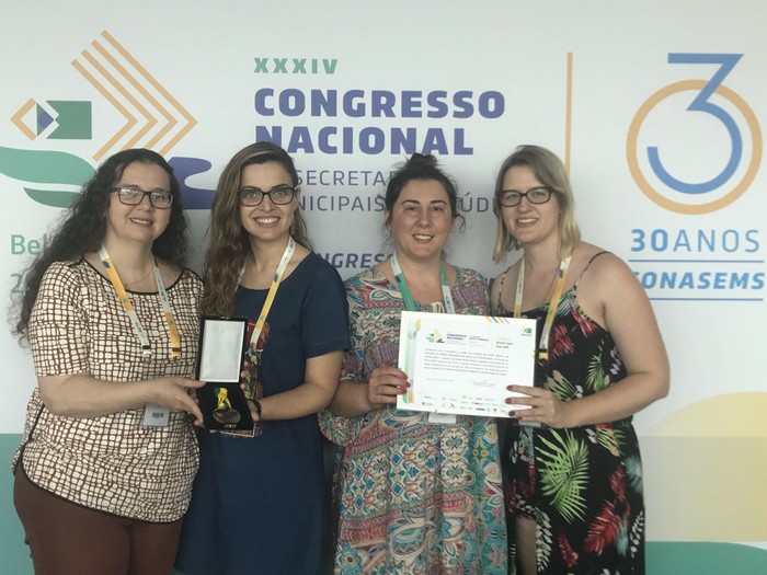 O município ganhou como melhor experiência na temática de gestão do trabalho e da educação na saúde trazendo para casa certificados e medalhas