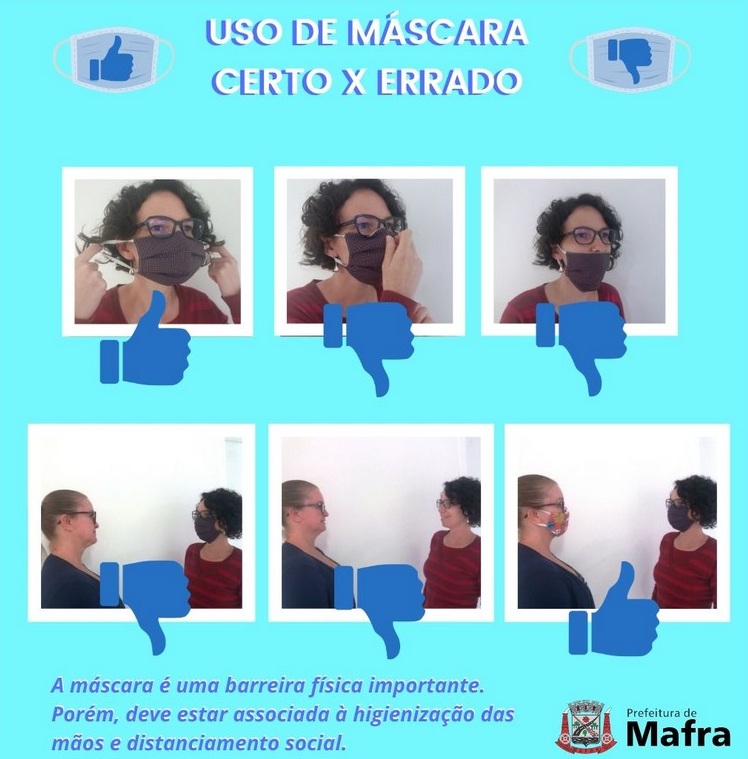 Saúde de Mafra orienta população sobre uso correto de máscaras