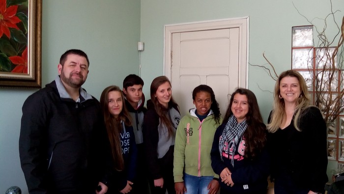 A Secretaria Municipal de Educação foi uma das unidades do executivo de Mafra a receber a visita dos alunos do 2º anos II, do Ensino Médio da EEB Jovino Lima, que estão desenvolvendo o projeto “Prefeitura na Escola”, coordenado pelo professor de Sociologia, Eduardo Costa. Os alunos apresentaram o projeto à Secretária de Educação, Estela Maris Bergamini Machado, que parabenizou o professor e a turma toda pela iniciativa.