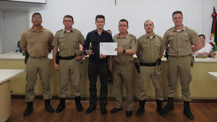 Na noite da última segunda-feira, 17, o Secretário Municipal de Fazenda e Planejamento de Mafra, Enalto de Oliveira Gondrige, recebeu troféu e diploma “Amigo da Guarnição Especial de Mafra”, pelos relevantes serviços prestados em contribuição aos objetivos e às realizações da Polícia Militar no âmbito da área da GEMFA. As homenagens foram entregues pelo comandante da Guarnição Especial de Mafra, Tenente Coronel Marcelo Pereira.