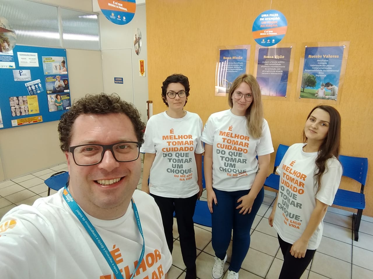 Para chamar a atenção dos consumidores sobre a importância da segurança com a rede elétrica, a agência regional de Mafra faz diversas ações de conscientização da população. Durante toda a semana, os atendentes das lojas de atendimento trabalham com as camisetas da campanha “É aí que mora o perigo”. Eles também distribuem material informativo sobre o assunto. Já na quarta-feira (07), o técnico de segurança da regional ministrará palestra em escola em Santa Terezinha, com o objetivo de conscientizar crianças e adolescentes sobre os riscos do contato com a rede elétrica.