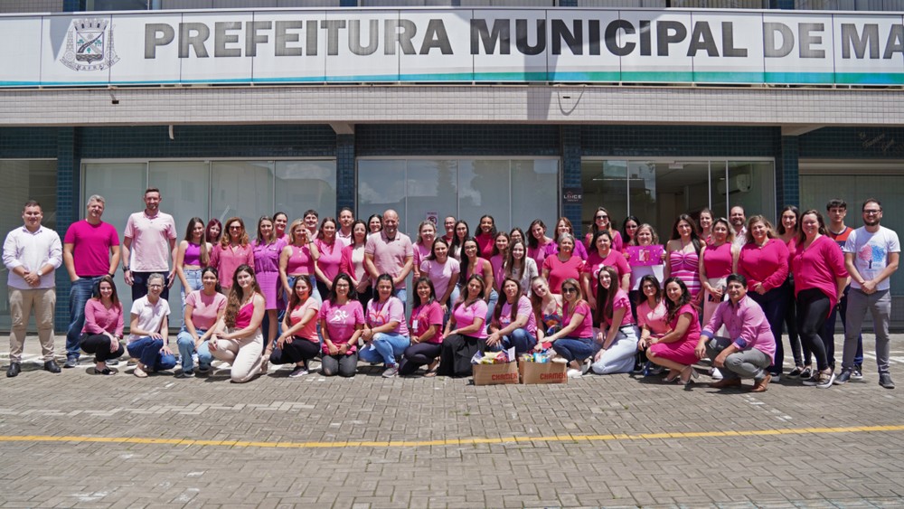 Como nos anos anteriores, um dia do mês de outubro foi dedicado a uma foto especial para que os servidores municipais demonstrassem seu apoio à campanha nacional Outubro Rosa. Na manhã desta sexta-feira, dia 25, os servidores da sede administrativa da Prefeitura de Mafra e de outras secretarias municipais vestiram camisetas cor-de-rosa e posaram para a tradicional foto em grupo.