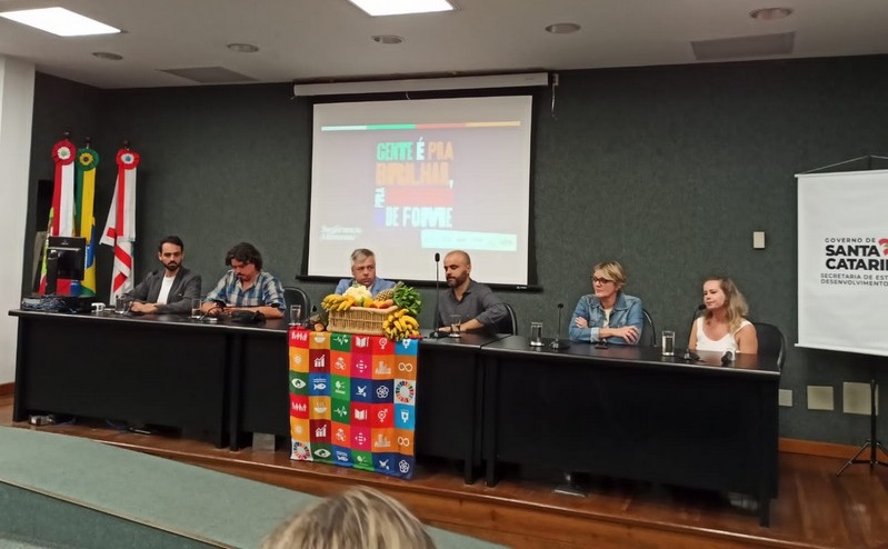 Esteve presente no evento o Presidente da Frente Parlamentar de SAN, Fabiano Luz, a Deputada Luciana Carminatti, o nutricionista da UFSC, Murilo Lyra e demais autoridades da área. No período da tarde o evento concentrou oficinas instrutivas para a adesão dos municípios e o monitoramento para o SISAN e na sequência elaboração do Plano Municipal de SAN.